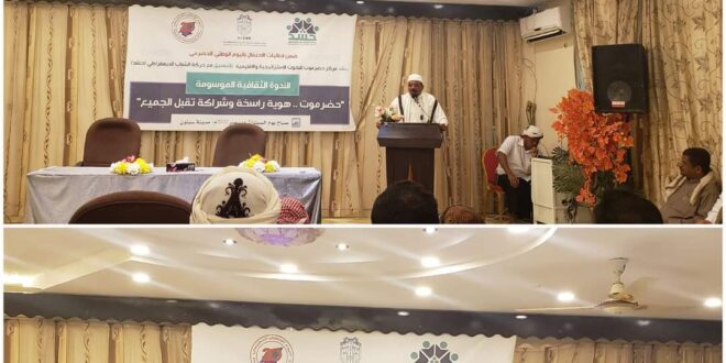 يجري الآن بقاعة المركز الاجتماعي بمدينة سيئون ندوة ثقافية موسومة ب “حضرموت .. هوية راسخة وشراكة تقبل الجميع” بحضور الأستاذ عبدالهادي التميمي وكيل محافظة حضرموت المساعد لشؤون مديريات الوادي والصحراء ، وكذا الأستاذ عصام حبريش الكثيري وكيل وزارة الإدارة المحلية الوكيل السابق لمحافظة حضرموت لشؤون مديريات حضرموت ، بالإضافة إلى حضور عددا من أصحاب الدراية والفكر الثقافي والنشاط المجتمعي والإعلامي ، حيث تأتي هذه الندوة ضمن فعاليات الاحتفال باليوم الوطني الحضرمي ، ويعقدها مركز حضرموت للبحوث الاستراتيجية والاقليمية بالتنسيق مع حركة الشباب الديمقراطي (حشد)..