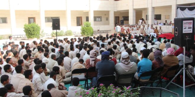 بحضور السلطة المحلية ووفد من أعيان المنطقة ثانوية الحوطة بمديرية شبام تقيم حفل تكريمي لمعلمي وطلاب الثانوية وتضيف بتكريم أولياء الأمور.