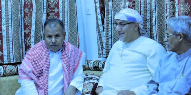 لقاء على شرف وزير السياحة الكيني نجيب بلعلاء في بيت الشيخ حمد بن سالم بلحامض بمديرية القطن