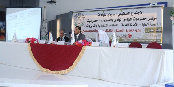 صدر عن الاجتماع التنظيمي السنوي لقيادات مؤتمر حضرموت الجامع بالوادي والصحراء – حضرموت