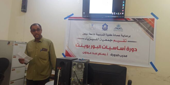 ضمن خطة الأنشطة الفصلية تقيم جمعية الفيزياء في كلية التربية جامعة سيئون دورة بعنوان أساسيات البوربوينت (Powerpoint)