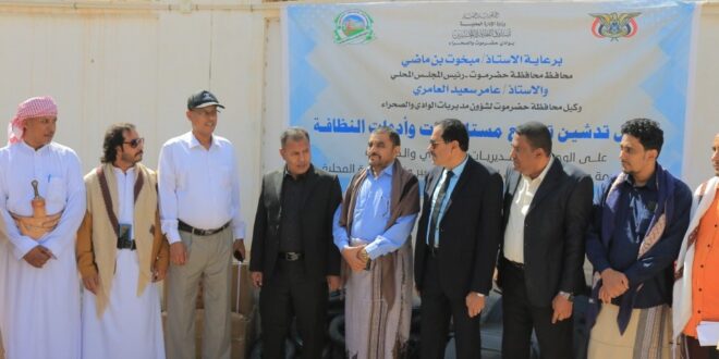 وفي حفل التدشين الذي حضره وكيل محافظة حضرموت الحكم سالم بن شرمان ومدير عام صندوق النظافة بوادي وصحراء حضرموت المهندس/ عمر سليم، ثمّن وكيل المحافظة الدعم المقدم من حكومة وشعب الصين الشقيق والذي سيسهم في الارتقاء بعمل وحدات النظافة والحفاظ على البيئة بالمديريات، مشيراً الى أهمية تعزيز هذه الشراكة لتشمل جوانب أخرى في المجال البيئي.