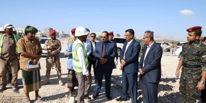 محافظ حضرموت يتفقد المراحل الأخيرة لإنجاز مشروع جسر بويش الأرضي بالمكلا