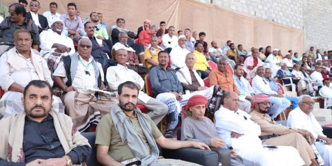 ممثل الشيخ بن حريز قائد الهبة الحضرمية، الشيخ حسن بن طالب الكثيري يشارك بأستاد سيئون، في المهرجان الكروي لكأس حضرموت السابع