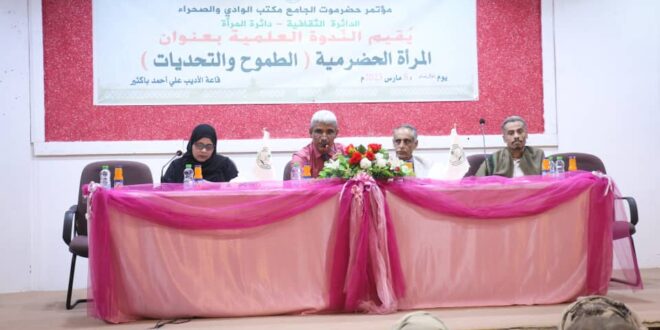 أقامها مكتب مؤتمر حضرموت الجامع بالوادي والصحراء: ندوة علمية بعنوان ( المرأة الحضرمية – طموح وتحديات ) تعقد بسيئون
