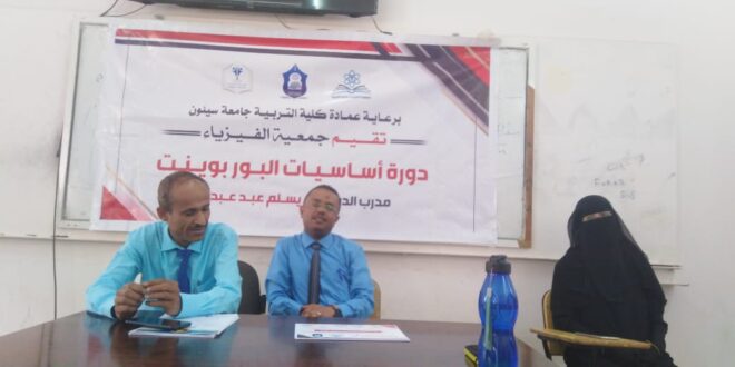 خلال أجواء تسودها المودة وفي صباح يوم الثلاثاء 7/3/2023 م نظمت جمعية الفيزياء بكلية التربية جامعة سيئون جلسة تكريم لطلبة القسم المشاركين في الدورات التدريبية المتنوعة التي نظمتها الجمعية خلال الفصل الدراسي الأول من العام الجامعي 2022م/2023م والتي كانت هذة الدورات تحمل العناوين *(أساسيات الباوربوينت)* التي ألقاها المدرب المبدع الأستاذ *يسلم عبد عبدون*  وكذلك دورة *(فن الإلقاء والخطابة)* التي القتها المدربة المبدعة *عائشة علي الشريف* وقد عبّر المشاركون بالدورات عن مدى سعادتهم الغامرة بما تلقّوه من معلومات مهمة ومفيدة خلال مدة تنفيذ هذه الدورات ،،