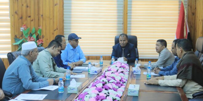 اجتماع برئاسة الوكيل العامري لمناقشة مشكلة البناء العشوائي وإجراءات تنظيم الأسواق بمديرية سيئون