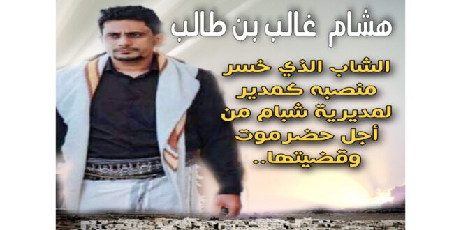 هشام  غالب بن طالب الشاب الذي خسر منصبه كمدير لمديرية شبام من أجل حضرموت وقضيتها..