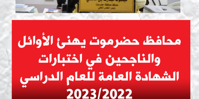 محافظ حضرموت يهنئ الأوائل والناجحين في اختبارات الشهادة العامة للعام الدراسي 2023/2022