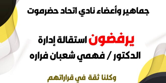 تحت شعار لنتحد من أجل الإتحاد ووسط منشآت النادي احتشد عشاق ومحبي ولاعبي وجمهور نادي الإتحاد بسيئون عصر يوم أمس الخميس 26 / 10 / 2023 م في وقفة احتجاجية الأولى وبحضور شخصيات اجتماعية وذلك للمطالبة برفض استقالة إدارة النادي المتمثلة برئيسها الدكتور فهمي فرارة .
