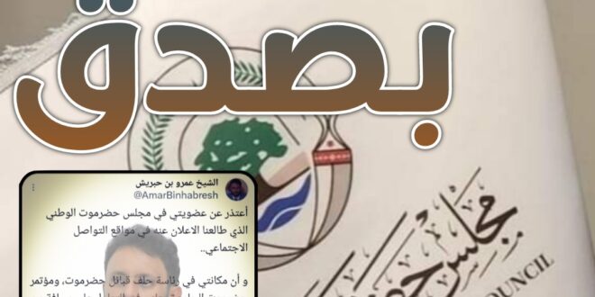 وبينما نحن اليوم في مرحلة مفصلية من تاريخ حضرموت ، وذلك بإعلان مجلس حضرموت الوطني ، كاستحقاق وطني حضرمي طال انتظاره ، فإننا نناشد جميع رجالات حضرموت بأن يحكموا في الأمور بصدق ، ويتعاملوا فيما بينهم بوطنية ، ويؤثرون بعضهم على أنفسهم ، لا بالسياسة التي تقدم المصالح الخاصة على مصلحة الوطن ، فحضرموت تستحق منا أن نغلب وطنيتنا لأجل مستقبل أجيالنا ، وحتى يكتبنا التاريخ نحن الخلف في أجمل صفحاته مع السلف