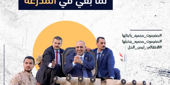 لازال المجلس الانتقالي يرى رفض أبناء حضرموت بكل مكوناتها العسكرية والمدنية لمشروعه المناطقي رغم محاولات المجلس تسويق شعارات مختلفة عبر ما يطلق عليها مليونيات يسوق من خلالها الوهم بينما الواقع مختلفا تماما عما يردد من شعارت لا يسعها من وصف سواء أنها للتسويق الإعلامي والابتزاز السياسي.