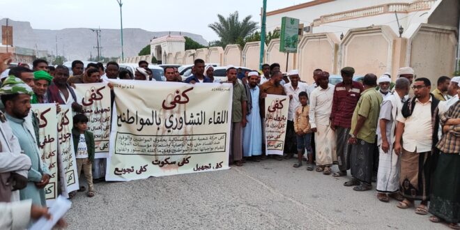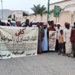 كما تبادل الحضور الرأي في اتخاذ الخطوات التي تناسب الوضع الراهن لانتزاع الحقوق والضغط على السلطات (بكافة مستوياتها) لعودة تفعيل مؤسسات الدولة والعمل بالدستور والنظام والقانون واحترام حقوق الإنسان والسعي لتوفير عيشة كريمة، وجعل المسؤول في خدمة المواطن، وإدارة موارد البلاد بكفاءة واقتدار.ولذا فقد قرر الحضور إجراء وقفة احتجاجية يوم غد الأحد الساعة التاسعة والنصف (٩:٣٠) صباحاً تاريخ ٨ محرم ١٤٤٦هجري، الموافق ١٤ يوليو ٢٠٢٤م بساحة قصر الرناد (بتريم) أمام المجلس المحلي كخطوة أولى لتسليم رسالة المواطنين للسلطة المحلية (بالمديرية والمحافظة) وكل الجهات (في الداخل والخارج) المسؤولة عن إدارة الوضع في البلاد والتعبير عن استياءهم وتذمرهم وعدم صبرهم على تفاقم الوضع، والرفع بأهداف حركة كفى التي انطلقت انطلاقة شعبية وبمشاركة أبناء الشعب المغلوب على أمره الذي، يعاني من تردي الخدمات، ووصولها، لحد، لايطاق تحمله