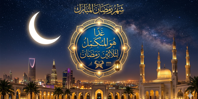السعودية تعلن غدا المكمل ل ٣٠ من شهر رمضان editor أسبوعين مضت أخبار, المجتمع, خبر عاجل, عاجل مشاركة Twitter Whatsapp Facebook Telegram السعودية تعلن غداالخميس المكمل لشهر رمضان والجمعة ٢٠مارس أول أيام عيد الفطر بعد تعذر رؤية هلال شوال مشاركة Twitter Whatsapp Facebook Telegram