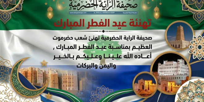 بمناسبة عيد الفطر المبارك ، تتقدم صحيفة الراية الحضرمية بأجمل التهاني والتبريكات إلى أبناء شعبنا الأبي في حضرموت الداخل والمهجر.