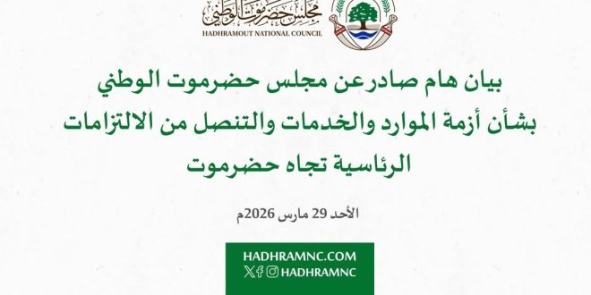 صادر عن: مجلس حضرموت الوطني التاريخ: 29 مارس 2026