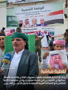 حضور الوكيل المساعد لشؤون مديريات الوادي والصحراء بمحافظة حضرموت الأستاذ عبدالهادي التميمي في مدينة سيئون بوادي حضرموت تأكيداً للتضامن مع المملكة العربية السعودية ودول الخليج العربي