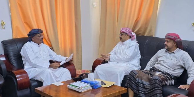 اطلع وكيل محافظة حضرموت المساعد لشؤون مديريات الوادي والصحراء، الأستاذ عبدالهادي التميمي، اليوم بمكتبه في مدينة سيئون، من مدير عام مصلحة شؤون القبائل بوادي وصحراء حضرموت، الشيخ سلطان بن زايد التميمي، على أوضاع المصلحة وسير نشاطها والجهود المبذولة لترتيب العمل المؤسسي.