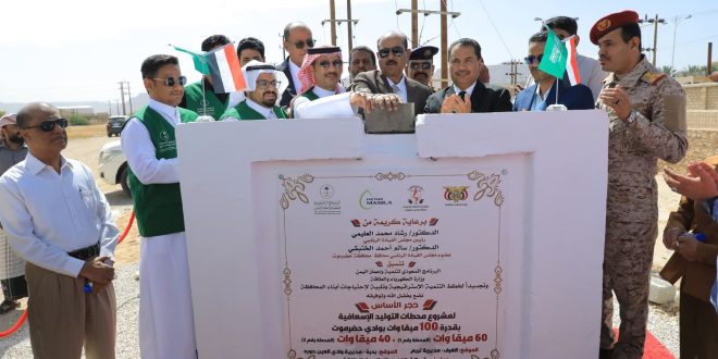 في خطوة تهدف إلى وضع حلول جذرية وعاجلة لأزمة الطاقة، وضع وكيل محافظة حضرموت لشؤون مديريات الوادي والصحراء، الأستاذ جمعان بارباع، اليوم الأربعاء، حجر الأساس لمشروع محطات توليد الكهرباء الإسعافية بقدرة إجمالية تصل إلى 100 ميجاوات.