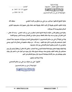 سيئون / الأربعاء 15 أبريل 2026م بقلوب مؤمنة بقضاء الله وقدره، نعى الشيخ يحيى …