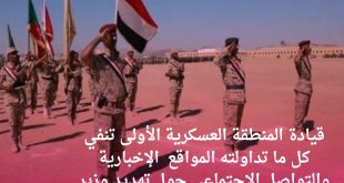 قيادة المنطقة العسكرية الأولى تنفي كل ما تداولته المواقع الإخبارية والتواصل الاجتماعي حول تهديد وزير الدفاع بقصف المنطقة العسكرية الاولى بالطيران في حالة عدم الانسحاب من مواقعها ▪️صحيفة صوت حضرموت/ خاص سيئون/3سبتمبر 2022م نفى مصدر مسؤول في قيادة المنطقة العسكرية الأولى الأخبار التي تداولتها المواقع الإخبارية ومنصات التواصل الاجتماعي …
