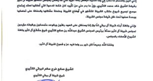 إقرا أكثر »الشيخ صالح فرج سالم البرقي الكثيري..شيخ قبيلة آل برقي الكثيري يصدر بيان إدانة واستنكار لما نسب له من تأييد لما يسمى مجلس التشاور لقبيلة آل كثير، ويؤكد تأييده لمجلس قبيلة آل كثير بقيادة الشيخ عبدالله صالح الكثيري شيخ مشايخ آل كثير
