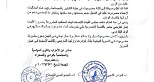 إقرا أكثر »خطاب موجّه من أعضاء هيئة التشاور والمصالحة الحضارم لرئيس مجلس القيادة الرئاسي وأعضاء المجلس الرئاسي بشأن إقصاء تمثيل حضرموت من تشكيل الوفد التفاوضي