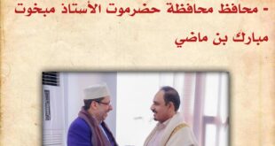 رسالتي الى / – دولة رئيس الوزراء د. احمد عوض بن مبارك – محافظ محافظة حضرموت الأستاذ مبخوت مبارك بن ماضي أن المسؤولية والأمانة التي وكلتم بها كبيرة جدا بحجم شعب ذاق الويلات والمنغصات في معيشته وتعليمه وعلاجه وابسط خدماته بينما تنعم حضرموت بالخيرات أرضاً وبحرً …