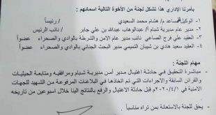 سيئون 28 مايو 2020 إدارة الإعلام والعلاقات العامة بوادي حضرموت و الصحراء أصدر وكيل محافظة حضرموت لشؤون مديريات وادي حضرموت والصحراء عصام حبريش الكثيري أمرا إدارايا عاجلا بشأن تشكيل لجنة تحقيق في حادثة غتيال الشهيد الملازم أول / صالح عبدالله بن علي جابر ومرافقيه في مديرية شبام وتتشكل اللجنة من …