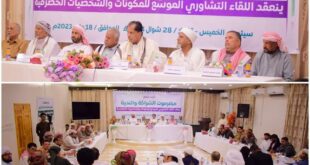 إقرا أكثر »خلال اجتماع الهيئة العليا .. مرجعية قبائل حضرموت: – تؤكد على عمق ومتانة العلاقات بين حضرموت والمملكة وتقف إلى جانب محافظ حضرموت بما يحقق استقلالية المحافظة – وتبارك الدعوة للقاء التشاوري الحضرمي يوم الخميس القادم وتدعو كافة المكونات الحضرمية للمشاركة الفاعلة فيه