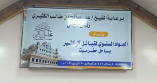 مجلس آل كثير بساحل حضرموت يعقد العواد الجماعي ▪️صحيفة صوت حضرموت/ المكلا_خاص : عُقد عصر الأمس الثلاثاء الموافق : ٢٥ شوال ١٤٤٤هـ العواد الجماعي لقبيلة آل كثير بساحل حضرموت تحت رعاية الشيخ : علي صالح بن طالب رئيس المجلس في القاعة الكبرى بنادي متطوعون بمدينة المكلا. وقد …