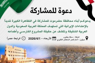 إقرا أكثر »*دعوة للاحتشاد ووقفة وفاء للمملكة العربية السعودية* *صادرة عن تجمع أبناء قبائل آل كثير*