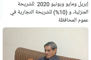إقرا أكثر »محافظ حضرموت يوجه باعتماد خصم 20% من استهلاك فواتير الكهرباء لأشهر إبريل ومايو ويونيو 2020 للشريحة المنزلية، و (10%) للشريحة التجارية في عموم المحافظة