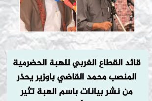 قائد القطاع الغربي للهبة الحضرمية المنصب محمد القاضي باوزير يحذر من نشر بيانات …