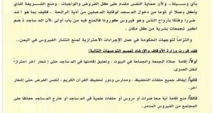 نص البيان الحمدلله وحده وبعد : •• نظرا لما يمر به العالم من جائحة فيروس كورونا السريع الإنتشار .. •• وكذلك حرص الشريعة الإسلامية على الحفاظ على أرواح الناس ودفع أي خطر عنها بأي وسيلة .. •• ولأن حماية النفس مقدم على كل الفروض والواجبات ، ومنع الشريعة للذي يأكل …