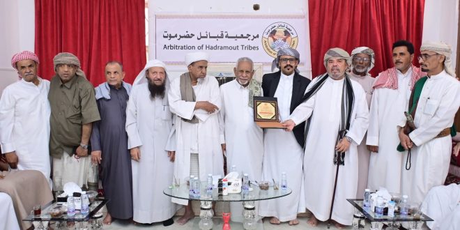 مرجعية قبائل حضرموت تكرم الشيخ سلطان التميمي مدير عام مصلحة شؤون القبائل بدرع تذكاري نظير جهوده القبلية والمجتمعية